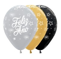 12 GLOBOS LÁTEX FELIZ AÑO NUEVO